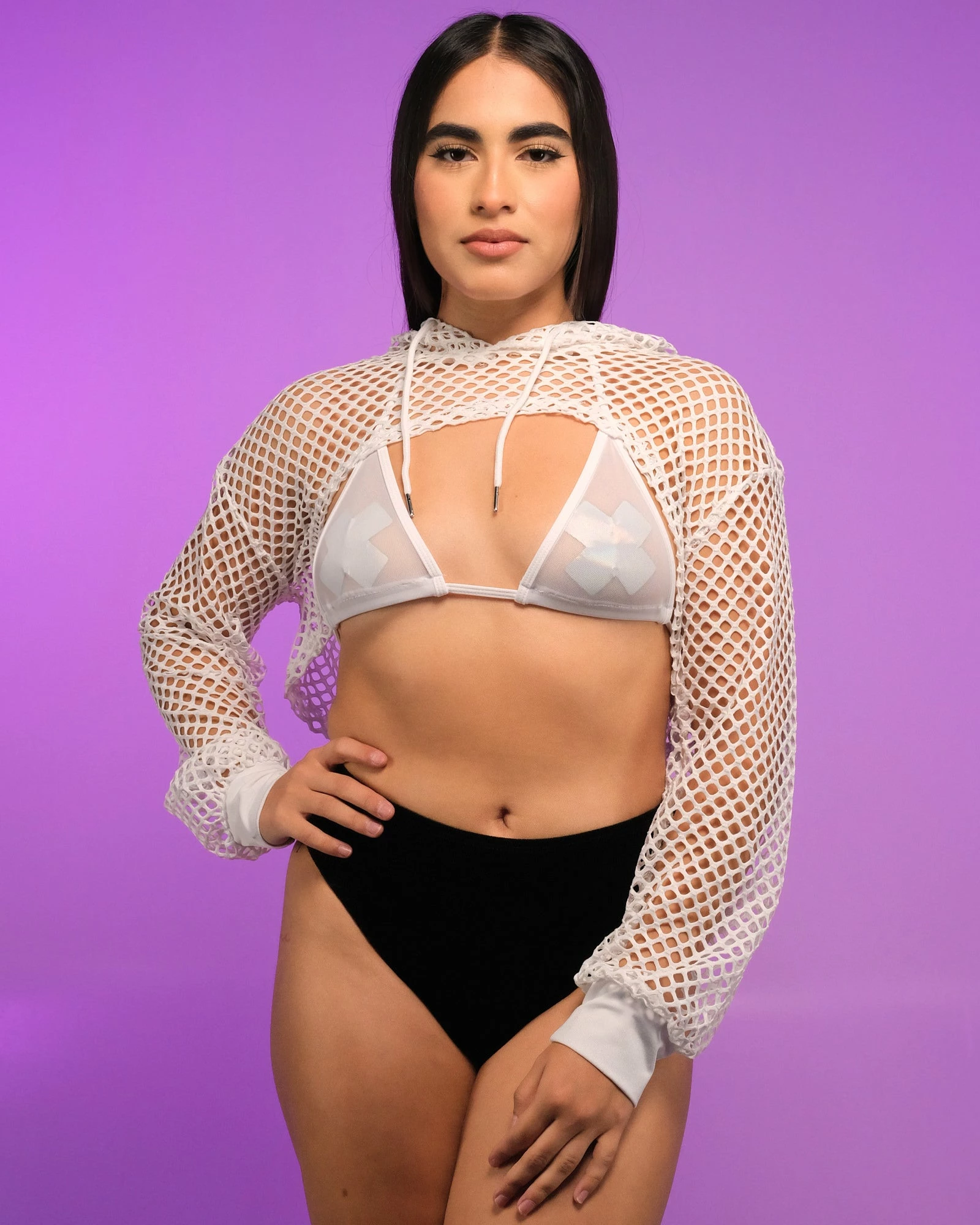 AE White Fishnet Hooded Shrug